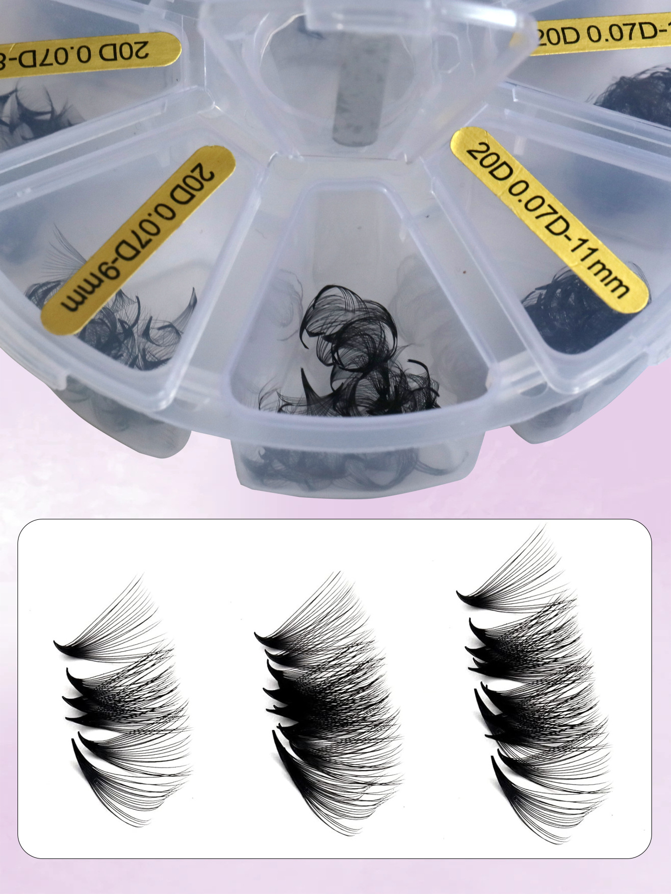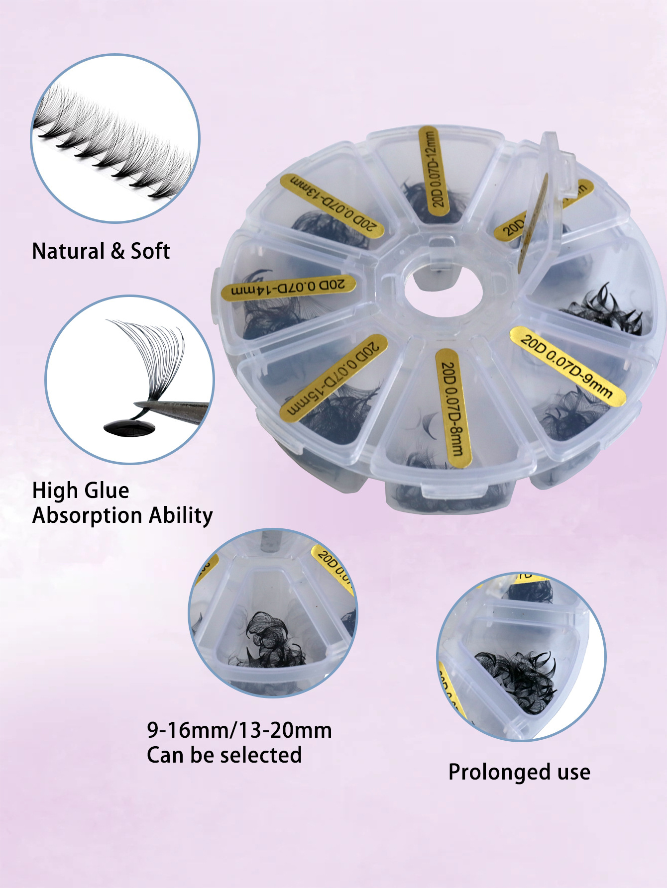 C curl: C/D curl Thickness: 0.05mm/0.07mm Length:8-15mm mixed tray Fan: 4D/5D/6D/8D/10D/12D/14D/16D/20D Quantity: 640 fan/800 fan/1000 fan